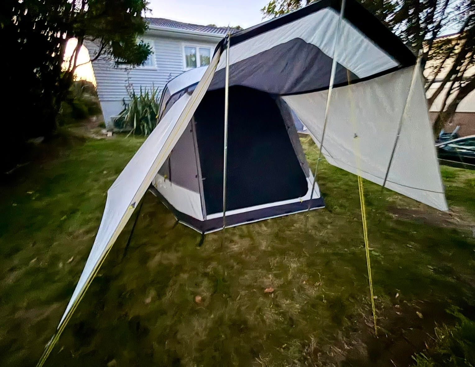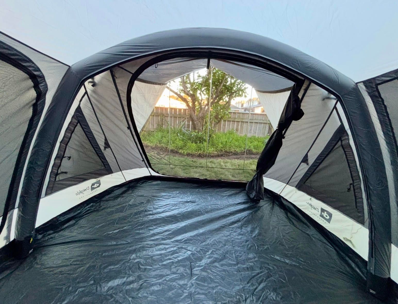 The tent’s reinforced air frame gives it a level of stability that’s hard to beat. Engineered for strength, this design keeps the tent secure in windy or rainy conditions. Plus, setup is a breeze—inflate it in minutes, and you’re ready to relax in the spacious living area or under the shaded veranda.