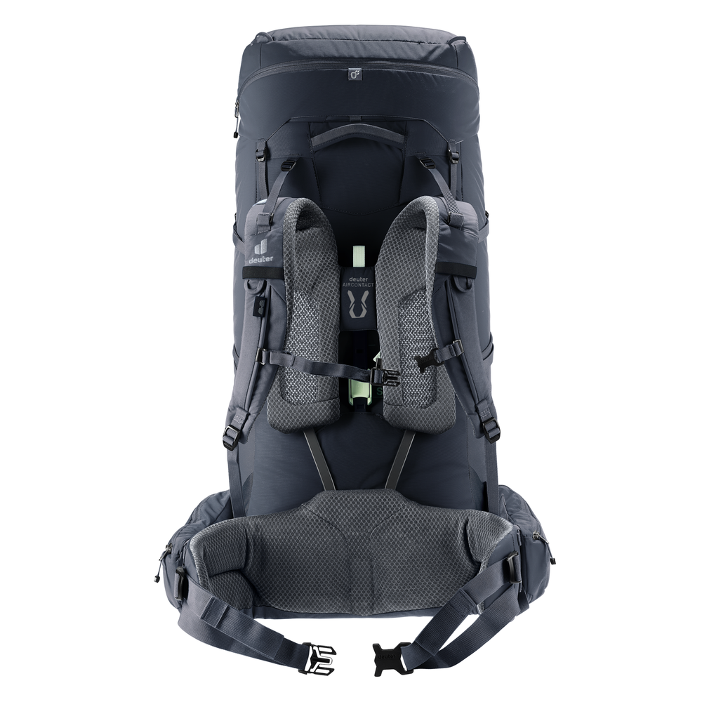The most important spec on any pack isn't the volume — it's the back system. A well-fitted hip belt carries 70–80% of the load through your hips, not your shoulders. Deuter's Aircontact system is designed for maximum load transfer on long multi-day trips; the Futura system prioritises back ventilation for active day walking in warmer conditions. Both are adjustable for torso length, which matters more than your overall height when finding the right fit.